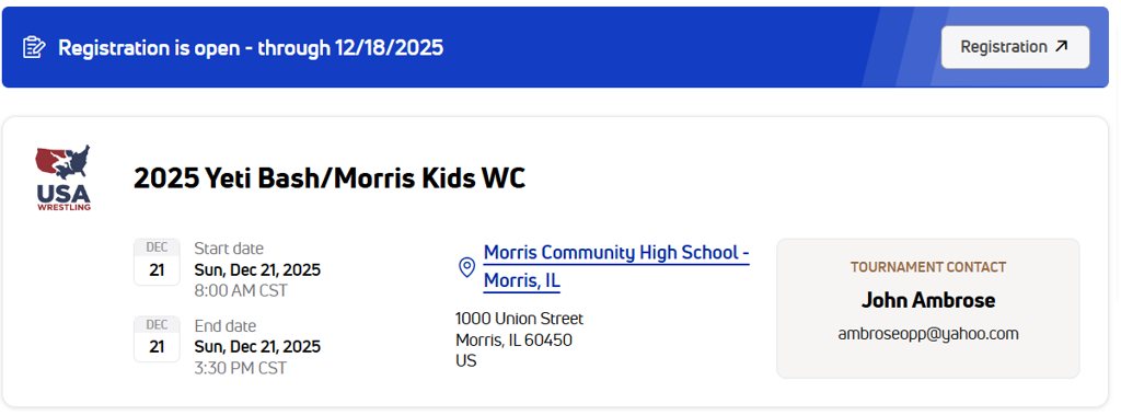 This year each family is responsible for signing up for their own son/daughters tournaments through trackwresting/FLO Wrestling which have combined into 1 website. Each tournament has limits, so if you are wanting to ensure your spot, sign up as early as you can to solidify it. Weights will be recorded by your coaches as normal for weekend tournaments. Elite tournaments still require onsite weigh in's for most.