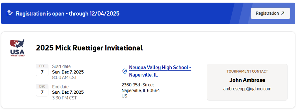 Below is a list of the dates, locations, times, and directions to the tournaments that wYc will be participating in during this regular wrestling season.